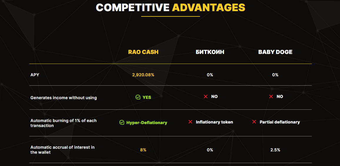 &#x20;                          <mark style="color:yellow;">**RAO CASH**</mark>                               BITCOIN                               BABY DOGE\
