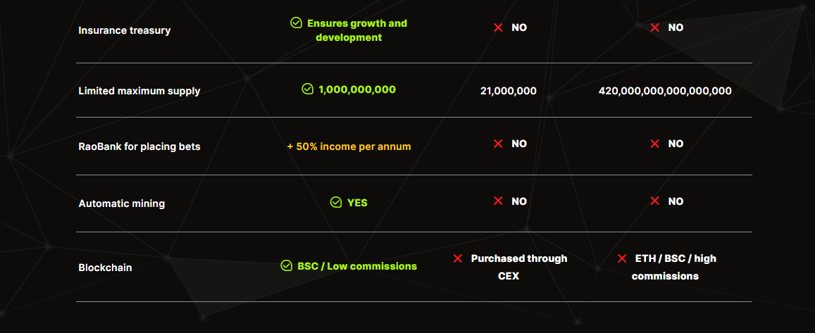 All the competitive benefits are available to our holders for review: just buy **$RAO** and get a per-second charge to your wallet balance. Thanks to new ecosystem innovations, all holders will be able to earn high income every day and in the long run. Join us now, and become part of a global network of millions of people around the world as we build your future together.    &#x20;